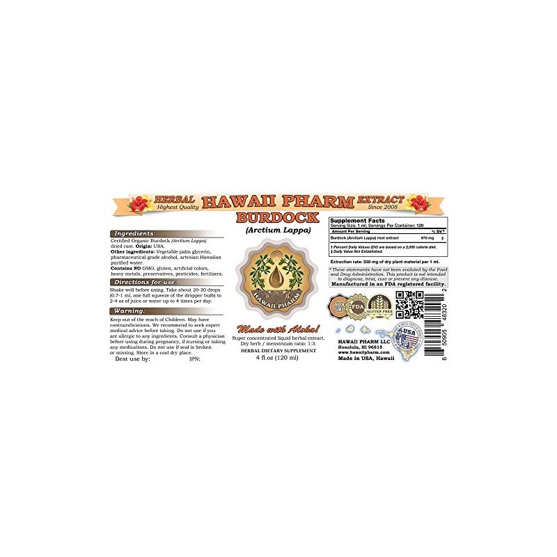 HawaiiPharm Burdock Liquid Extract, Organic Burdock (Arctium Lappa) Tincture Supplement 2x2 oz