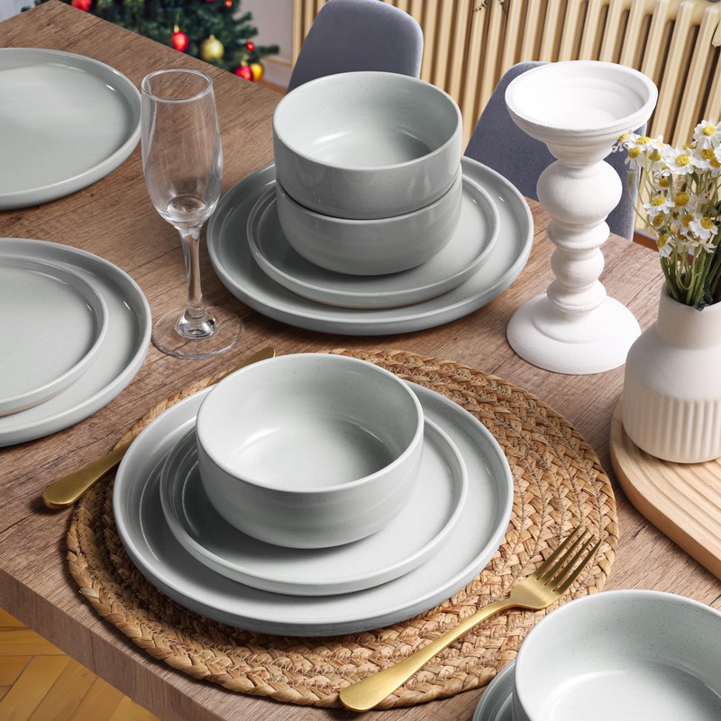 HaWare Stoneware Dinnerware Sets, 24-Piece Plates and Bowls Set for 8, Dishes Set for Home Restaurant, Speckled Misty Grey