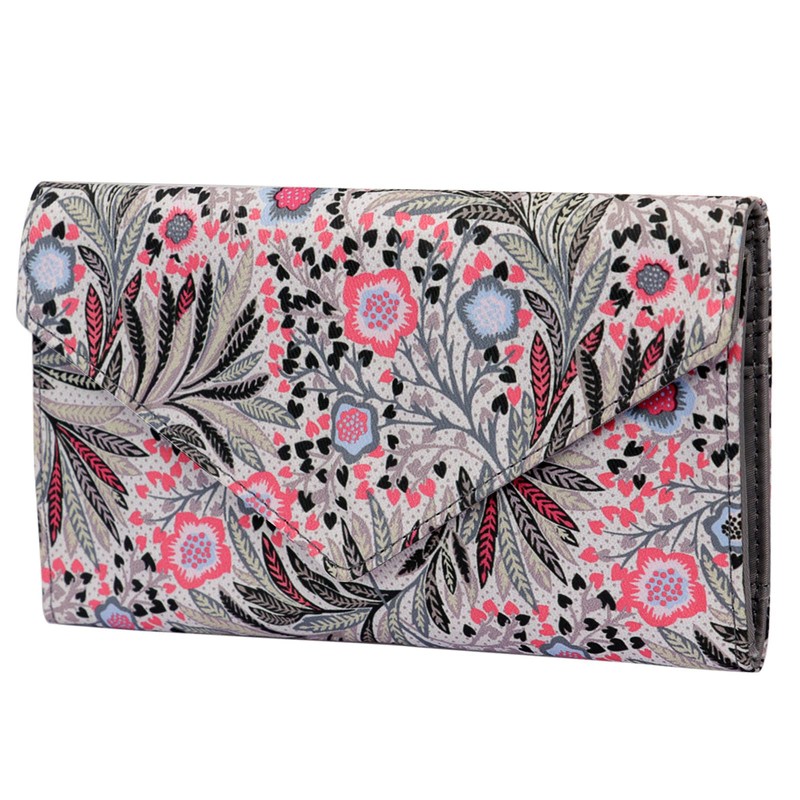 HAWEE Envelope Card Wallet for Women and Men Ultra Slim Credit Card Case with Zip Coin Pocket 13 Card Slots 1 ID Window, Fissidens Flower