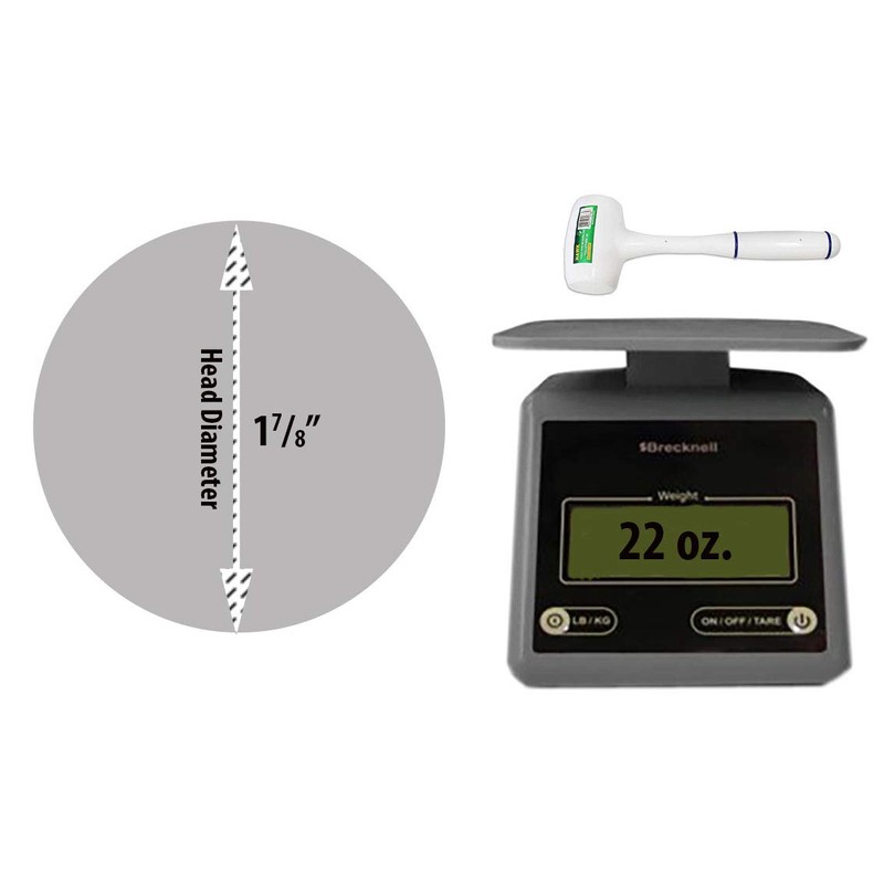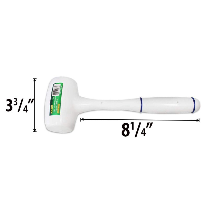 HAWK 1 Lb, 5 Oz. Dead Blow Mallet, White - PH765 **Product Description:** This dead blow mallet is great for preventing scratches and damage to your project. The entire mallet and handle has a rubberized surface in white with blue accents. A real favorite among jewelers and hobby enthusiasts.