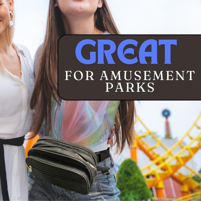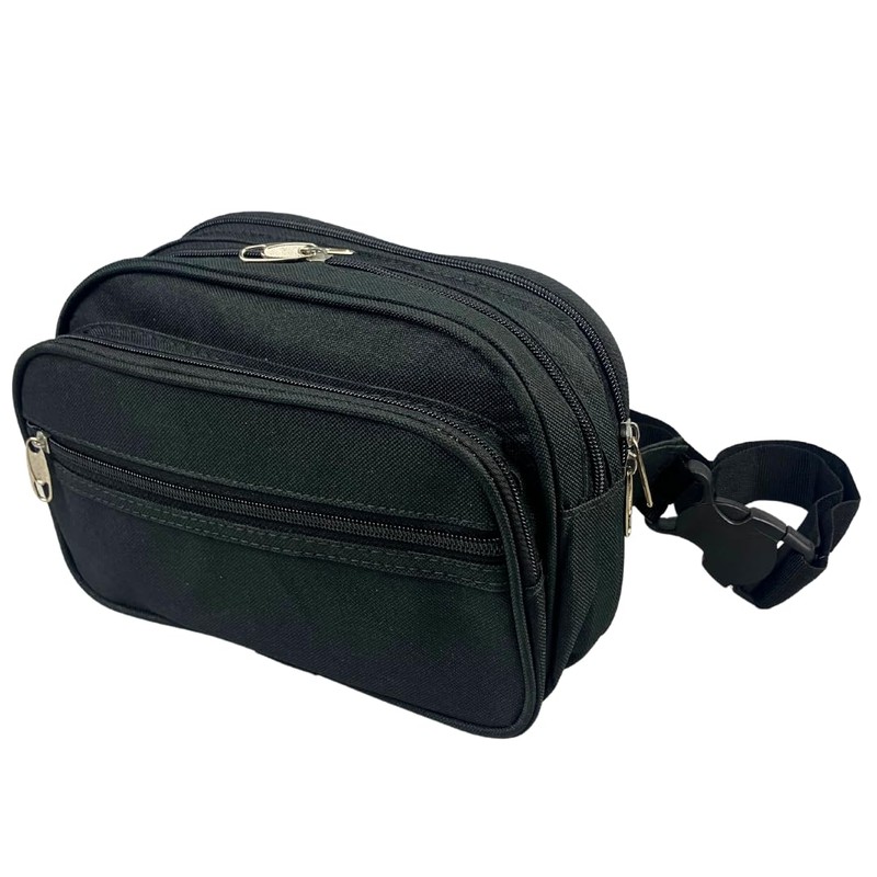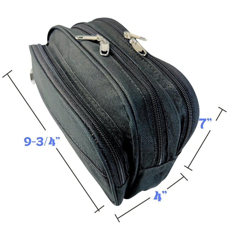 RAVEN Black Money Pouch with Belt | 5 Zippered Compartments | 10" x 7" (25.4 cm x 17.8 cm) Size | Adjustable 34"-55.5" (86.4 cm-141 cm) Belt | Canvas & Nylon Construction