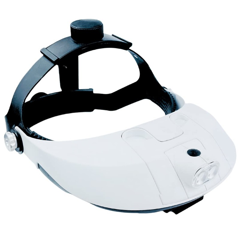 HAWK OPTICALS 2 LED Illuminated Headband Magnifier - White || 5 Lens Power Options || Adjustable Fit || Great for Jewelry Making, Watch & Electronic Repair, Sewing & Embroidery