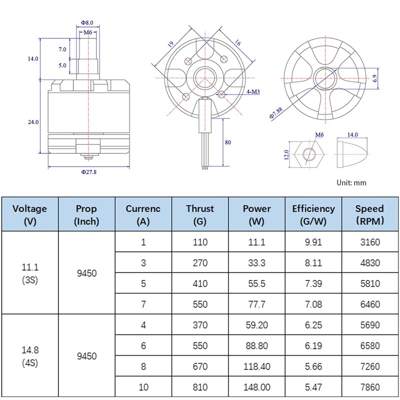 - 𝐒𝐩𝐞𝐜𝐢𝐟𝐢𝐜𝐚𝐭𝐢𝐨𝐧𝐬 - KV: 920, Voltage: 7.4-14.8V (2-4S), Weight: 52g, Hole Pitch: 16mm&19mm, Prop size: 8-10 inch