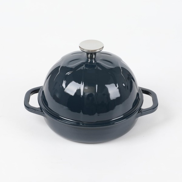 HAWOK Cast Iron Bread Cloche, Dia. 6.3inch/16cm, 0.57qt, Sourdough Baking Pan Enameled Navy Blue