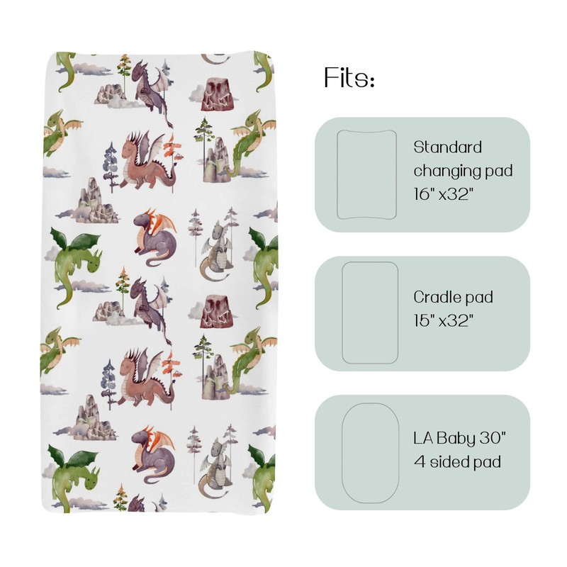 HawSkgFub Watercolor Dragons Fairy Tale Changing Pad Cover for Baby Girls, Animal Mountain Dragon Lover Diaper Change Table Covers, Soft Stretchy Safe Snug Fitted Changing Mat Sheets Fit 32"/34" x 16"