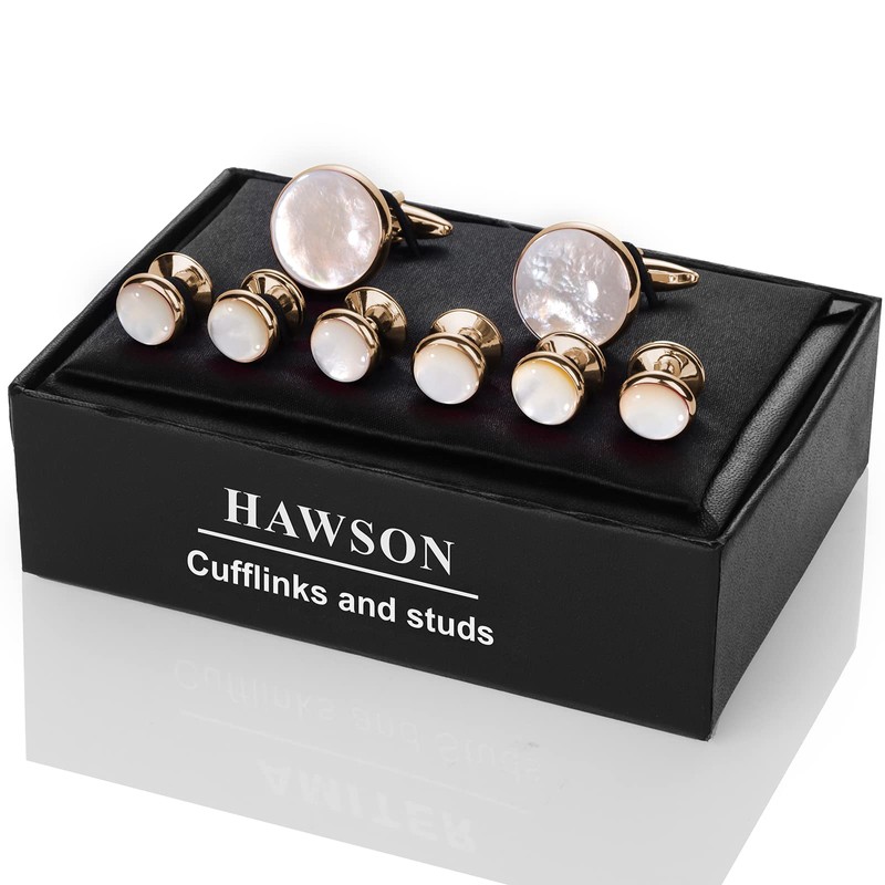 HAWSON Cufflinks and Tuxedo Studs Set for Men with Gift Box, Mother-of-Pearl Cuff links for French Cuff Shirt and Dress Shirt, Suitable for Wedding, Birthday, Party