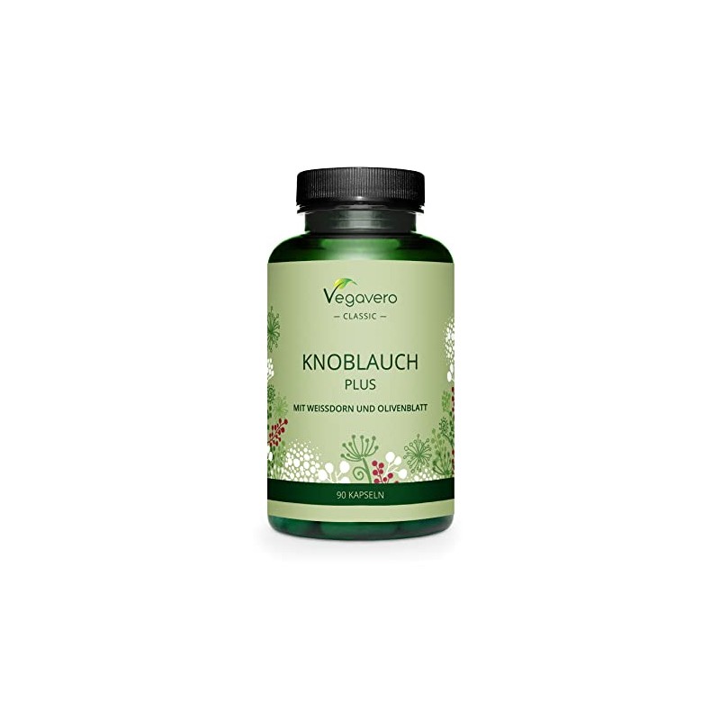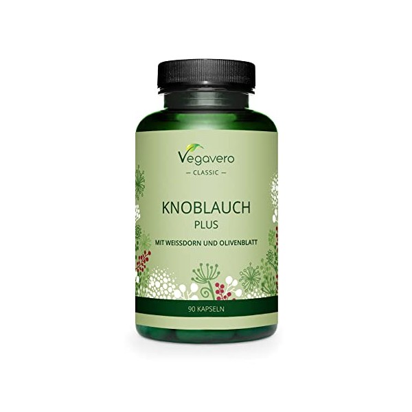 Hawthorn Garlic Supplement Vegavero® | NO Additives | with Olive Leaf Extract | Allicin from Garlic Extract | Lab-Tested & Non-GMO | 90 Capsules | Vegan