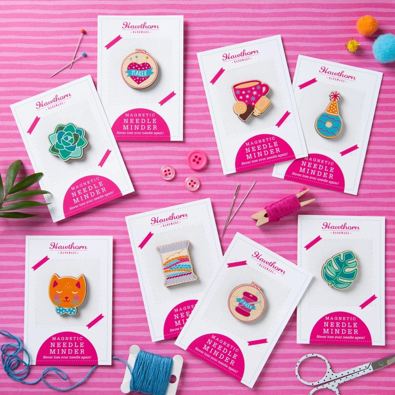 - Needle Minder: The Hawthorn Handmade needle minders are the perfect magnetic stitching accessory, designed to help prevent your needle and thread from getting lost when you take a break from your stitching or as you are changing threads. Pop onto your fabric, clothing, sewing machine or table and this super strong magnet will mind all your pins and needles.