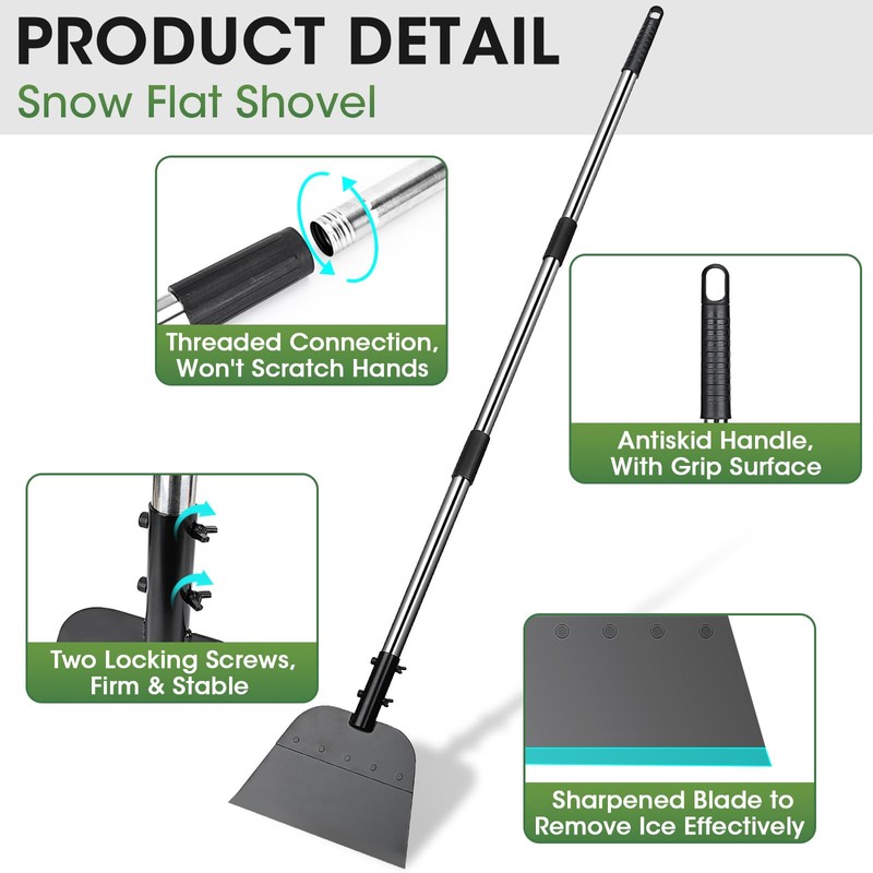 - Multifunctional Snow ShovelOur flat shovel heavy duty has a wide range of usage, including snow removal, ice scraping, weed cutting and ground clearing. Flat shovel for landscaping is a sturdy and versatile tool for winter and garden needs. Versatile floor scraper long handle is suitable for use throughout all four seasons.