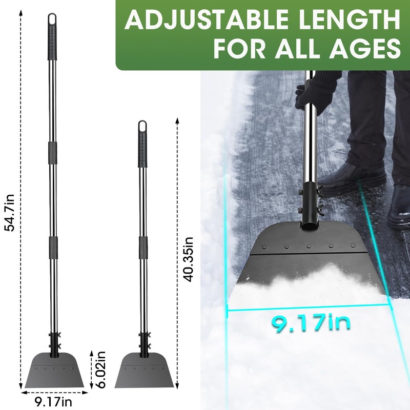 - Saves Your Back Ice scraper for driveway is especially designed for all ages, our heavy duty ice scraper has an ideal height of 54.7 inches, to ensure a back-friendly usage experience. Floor scraper make it easy for snow removal or for the driveway or scrap ice without straining your back.
