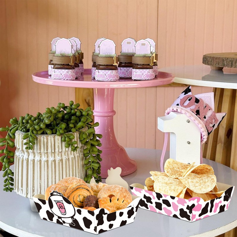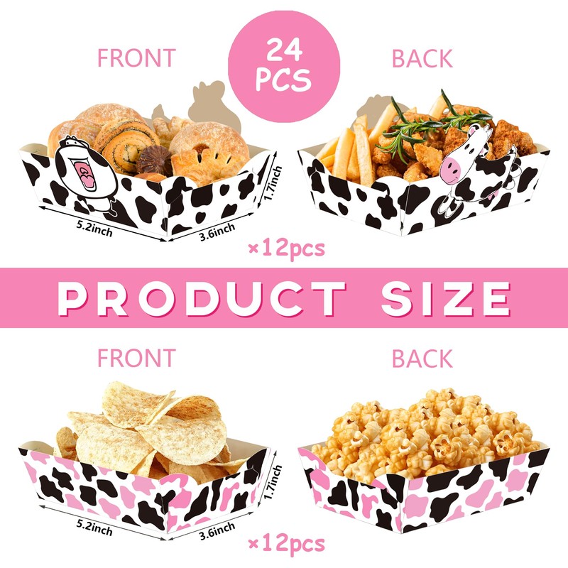 - 【Applicable occasions】: The Cow Print birthday party favors cardboard snack trays are nice for food cart at cow plates themed birthday party, on party decorations, anniversaries, celebrations, costume parties, gatherings, various theme parties and more