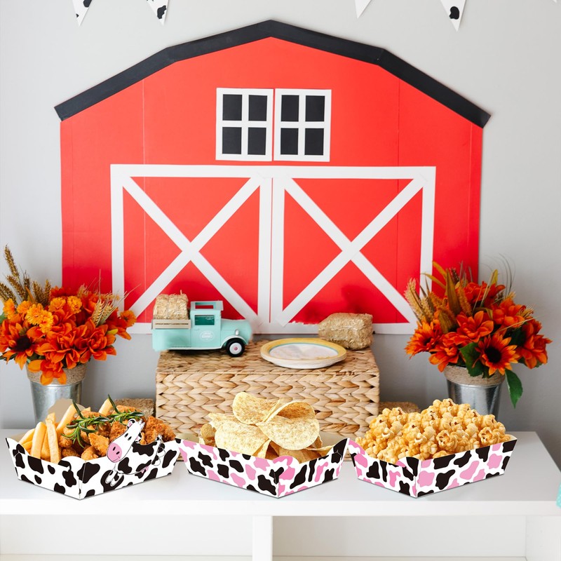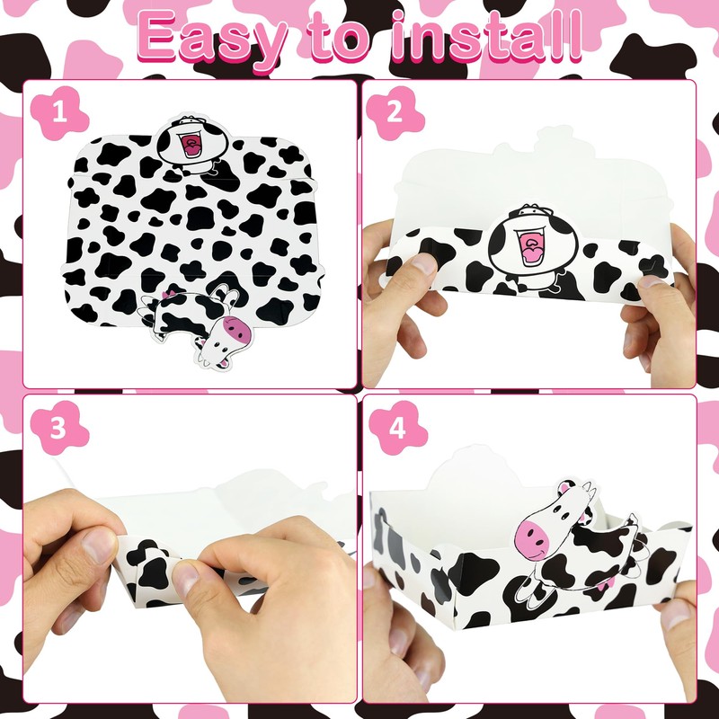 - 【Applicable occasions】: The Cow Print birthday party favors cardboard snack trays are nice for food cart at cow plates themed birthday party, on party decorations, anniversaries, celebrations, costume parties, gatherings, various theme parties and more