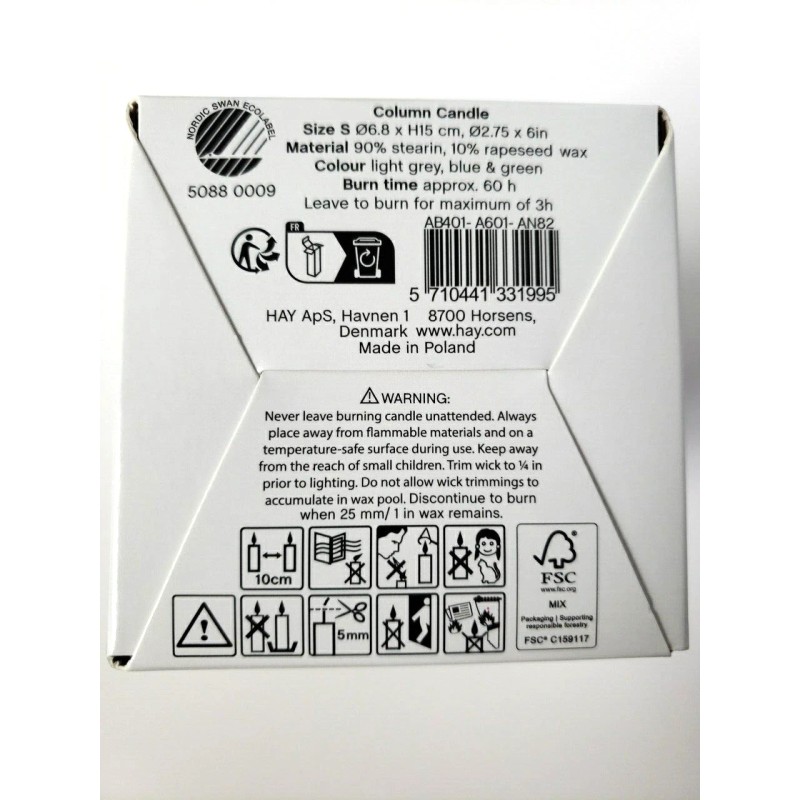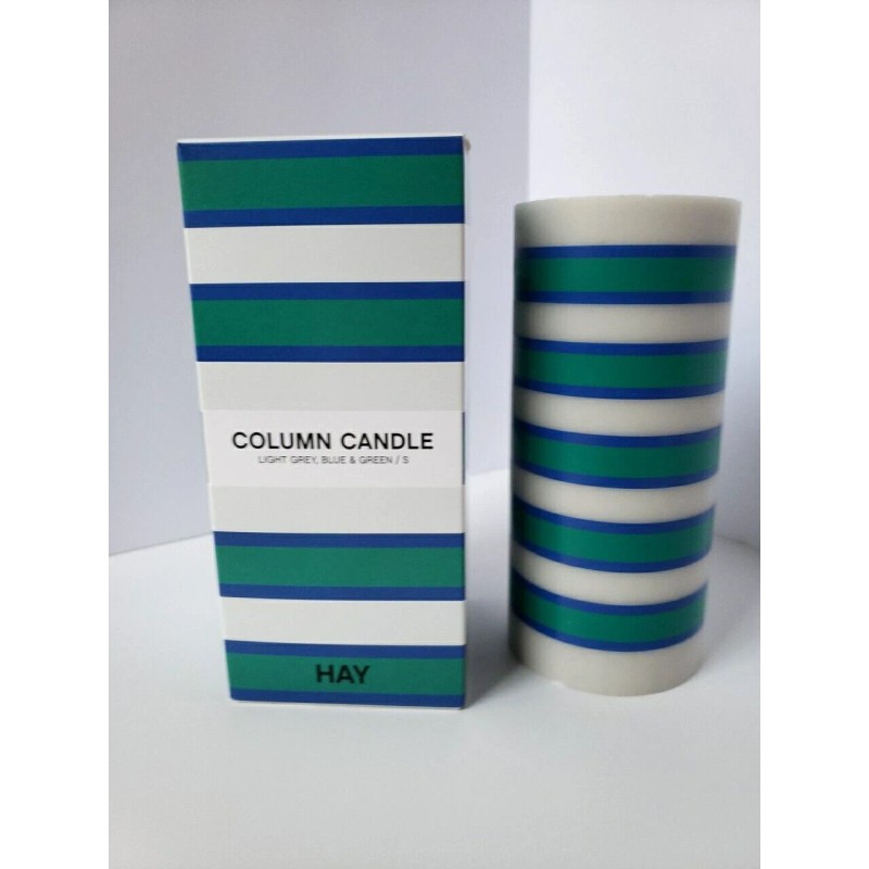 Hay Column Candle Small Light Grey Blue and Green New In Box Qty Available