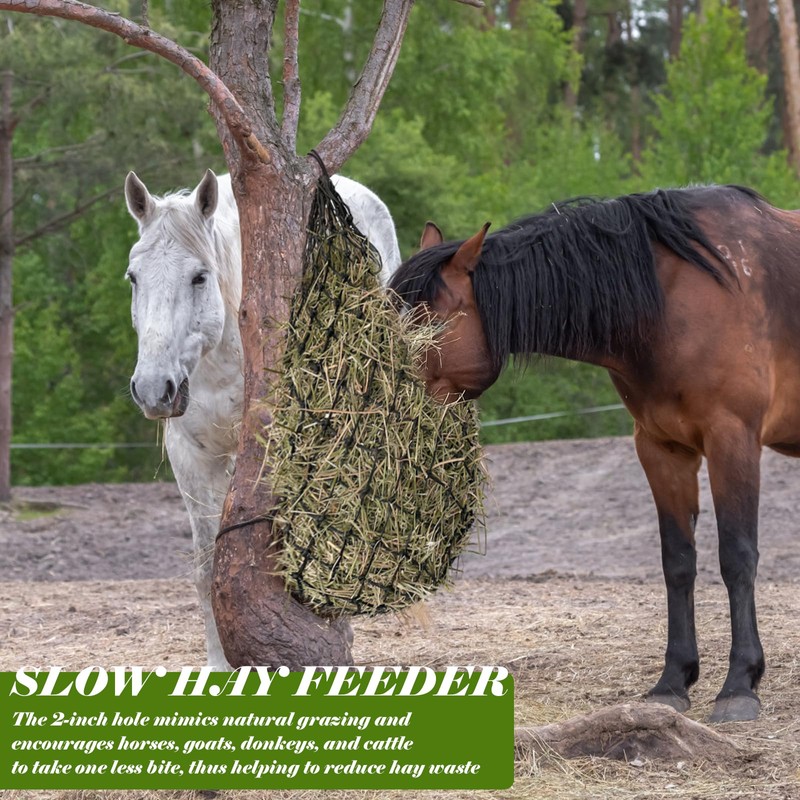 - 【REDUCE FOOD WASTE】:With 2 x 2 inch holes, this hay net prevents excessive hay spillage and reduces food waste, allowing your horse to enjoy every piece of hay without mess. Holds about 3-4 pieces of hay at a time.