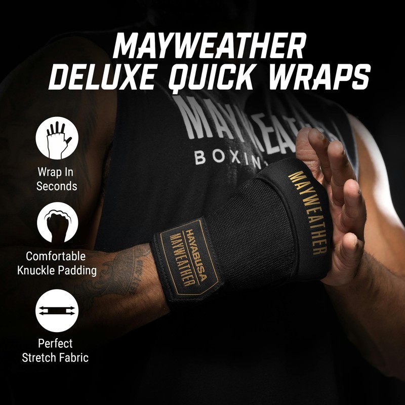 - Wrap Your Hands In Seconds: Save precious time before you train and avoid the hassle of traditional wraps. Mayweather Deluxe Quick Gel Wraps slip on like a glove to fit perfectly every time while the perfect stretch wrist wrap delivers secure support.