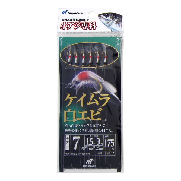 - Hayabusa small sooty 専科 Kay uneven white shrimp HS202 (sabiki ■ ■ Total Length: 1.4 m/1.75 m. ■ Quantity: 1 set of 6 PCs Knook ■ core yarns: 1 – No. 5 a Harris: 0.6 – No. 3 ■ Knook: No. 3 – 10 * The Knook species: Small Sooty ■ Color: Gold « Hayabusa sabiki set. »