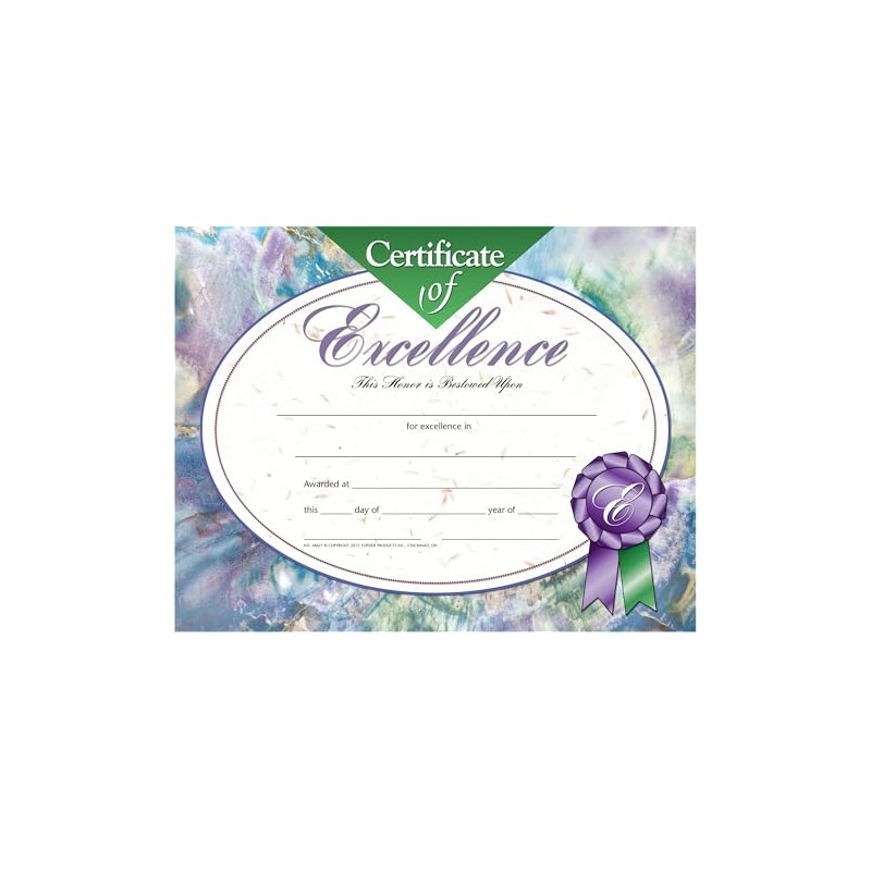 Hayes Certificate of Excellence, Achievement Recognition for Students, Employees & Teams, Customizable Academic Awards, Full-Color Matte Finish, 8.5" x 11" - 30 Pack