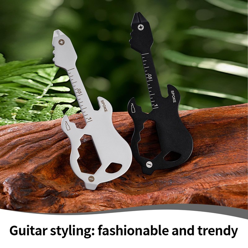 - This multi tool key takes the unique shape inspired by the guitar, not only has a stylish look, but also with 12 practical functions such as opening bottles, screws, removing courier, etc., integrated, the daily needs of the tool cleverly integrated, save the trouble of searching for tools around