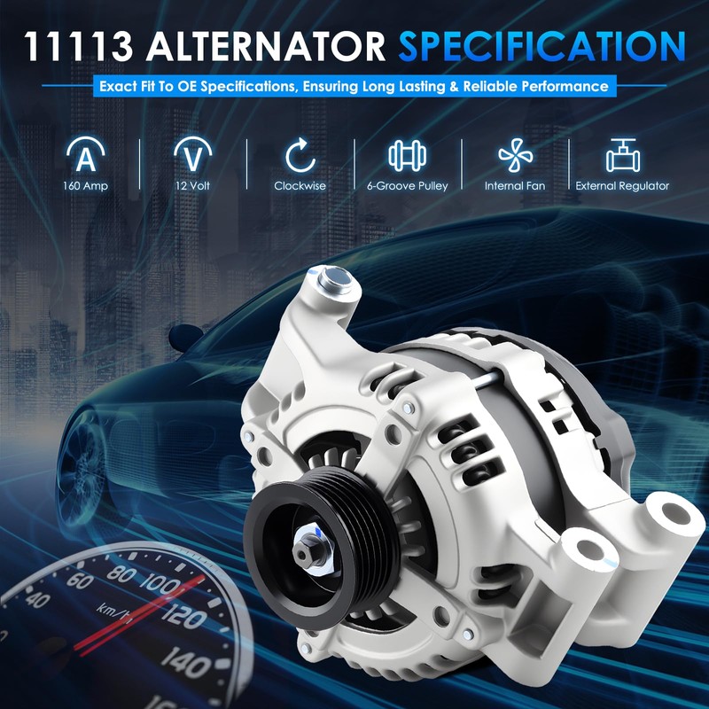 - [New Alternator Specifications]: ① Amperage: 160A; ② Voltage: 12V; ③ Rotation: CW(Clockwise); ④ Number of Grooves: 6-Groove Pulley; ⑤Fan Type: Internal; ⑥Regulator Type: External. When your vehicle stalling engine, sudden dashboard warning lights or failing electrical systems, HAYIAUTO brand-new car alternators is a good choice for you to solve these problems. It offers a simple, reliable replacement for your original alternator.