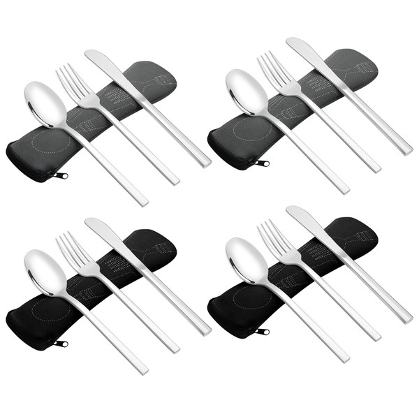 Hayixia 4 Set Stainless Steel Travel Silverware, 12 Pieces Camping Cutlery with Case