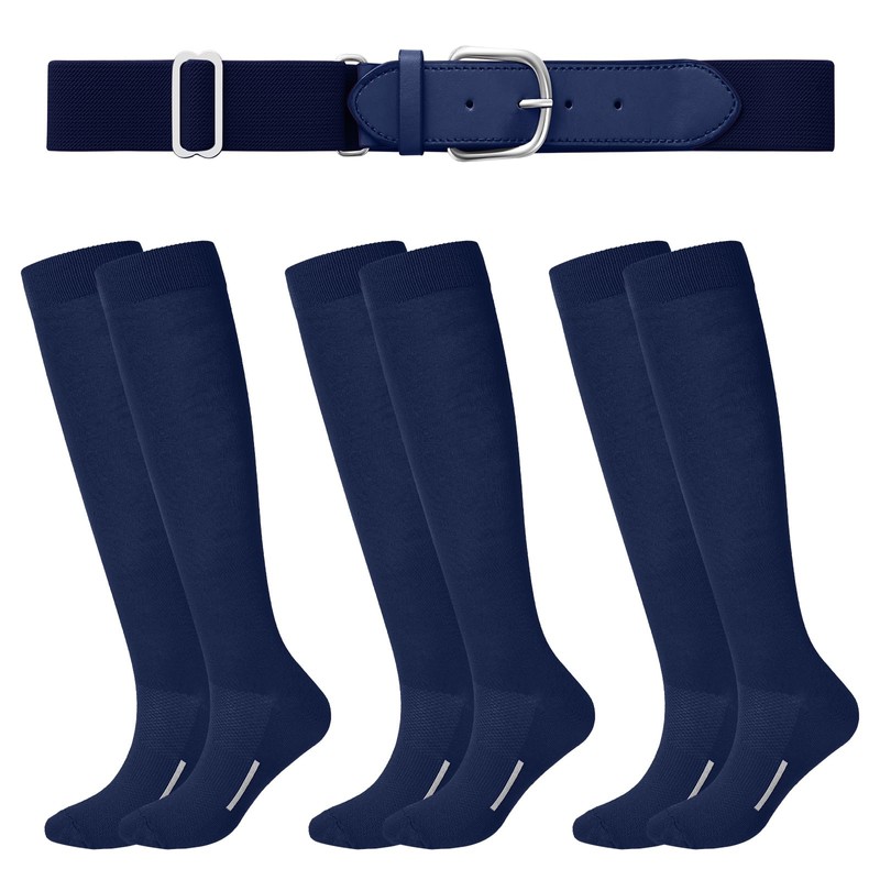Haysandy Baseball or Softball Sock and Belt Combo Set 3 Football Baseball Socks with Baseball Belt for Kids Boys Youth Girls Adult(Navy Blue, Small)