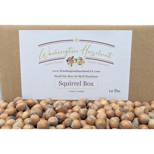 Hazelnuts in shell, Raw or roasted. Grown in our family's orchard in Washington state. (Raw, 12 pound Squirrel Box)