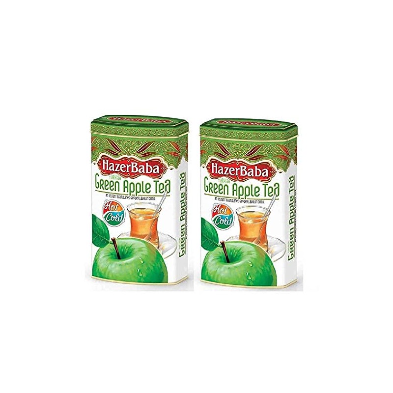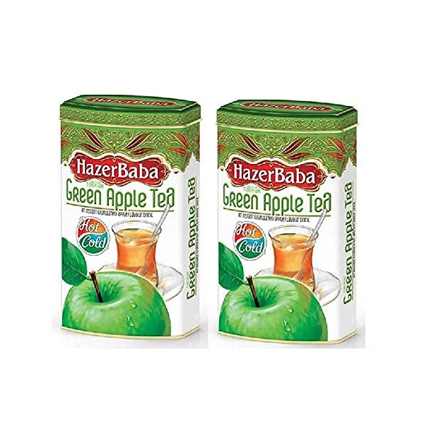Hazer Baba Turkish Green Apple Tea Instant Powder Drink, Fruity Refreshing Taste, Vegan, Halal, Caffeine-Free, Loose Alternative for Tea Bags, Quick Hot or Iced 8.8 oz 2 Pack, Tin Box