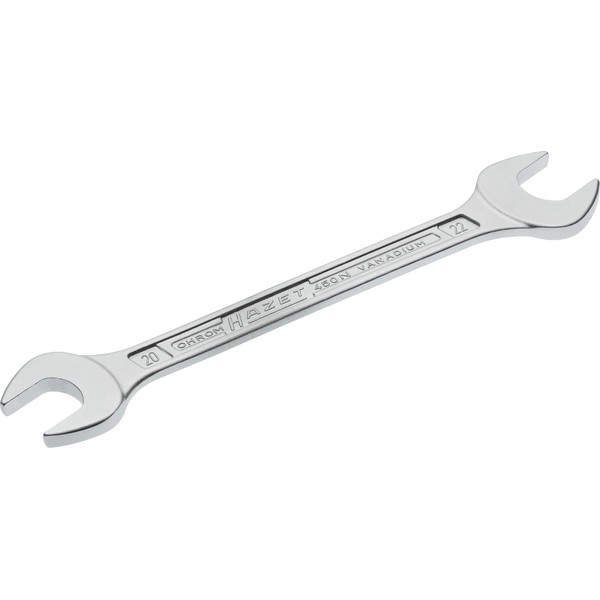 Slim design, but with a double T-structure handle that is easy to apply force, it is possible to use hard. The pearly finish prevents your hands from slipping due to oil. Industrial machinery, automobiles, construction machinery, etc.; Double surface width dimensions: 0.8 x 0.9 inches (20 x 22 mm). Total length: 9.4 inches (238.9 mm). Chrome vanadium steel. Surface treatment: Nickel chrome plated.