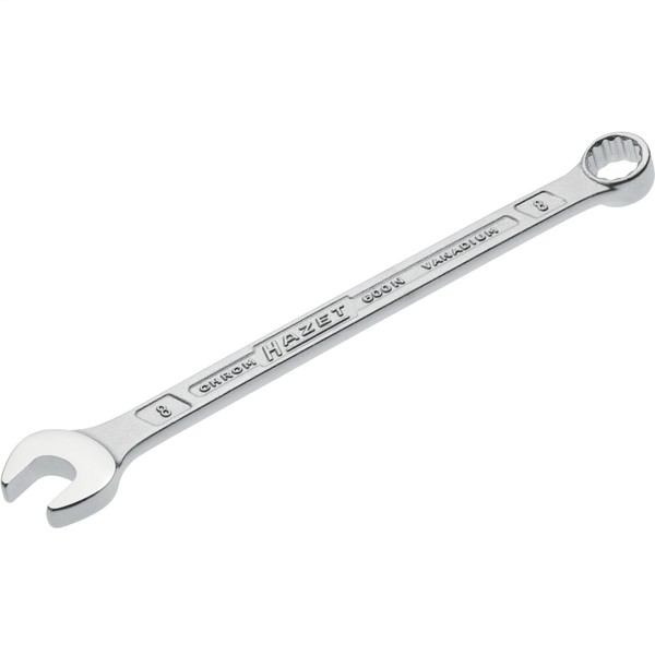 - Product Information: 1 x HAZET 600N-8 Combination Spanner | Output: External Double Hexagon, Flat Width: 0.3 inches (8 mm), DIN 3113 Form A, Complies with ISO 3318/7738, Body Dimensions: 5.1 inches (130 mm), Net Weight: 0.02 kg
