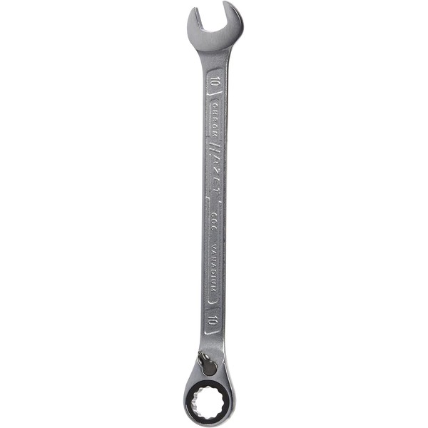 - Includes: 1x HAZET 606-10 Ratchet Ring Open End Spanner, Output: External Double Hex Traction Profile, Chrome Plate, Ratchet Function, Body Dimensions: 6.1 inches (154.5 mm), Net Weight: 0.05 kg