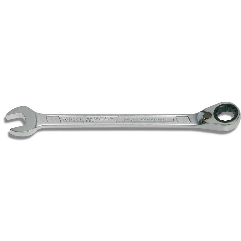 - Includes: 1x HAZET 606-16 Open End Ratchet Ring Spanner, Output: External Double Hex Traction Profile, Chrome Plate, Ratchet Function, Body Dimensions: 9.1 inches (230.2 mm), Net Weight: 0.17 kg