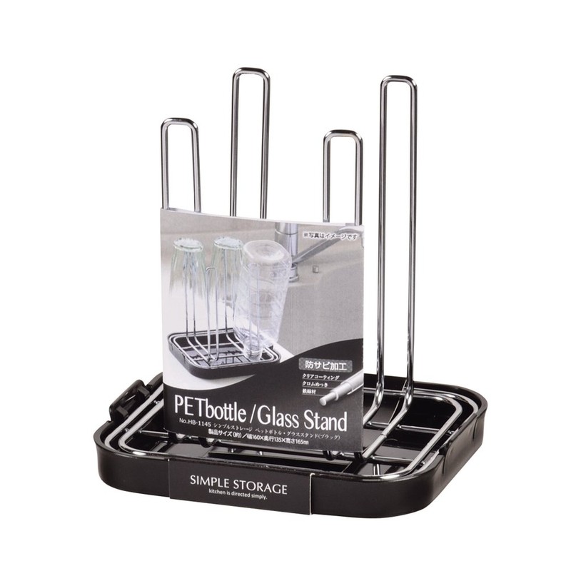 パール金属 シンプルストレージ ペットボトル・グラス スタンド ブラック HB-1145
