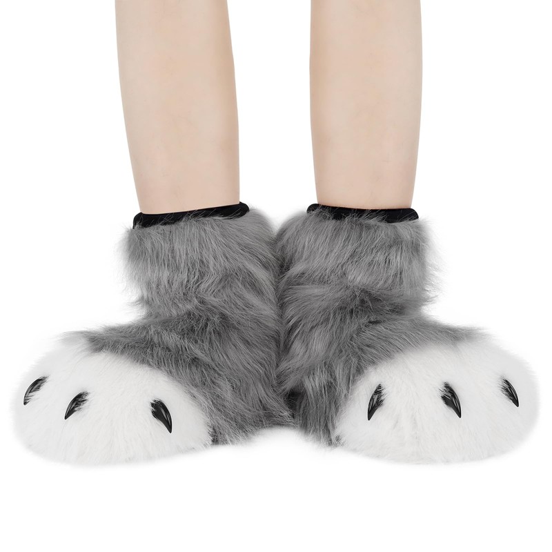 hbbhml Furry Faux Fur Shoes Animal Cat Fox Paw Slippers Fursuit Plush Fuzzy Fluffy Warm Claw Boots Costume Accessories