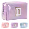 Hbhhpov A-Z Personalized Initial Letter Makeup Bag Organizer,Waterproof PU Leather Chenille Letter Cosmetic Pouch Bag Travel Portable Toiletry Bag,Gift Ideal for Teen Girls Women Birthday Friend Mom