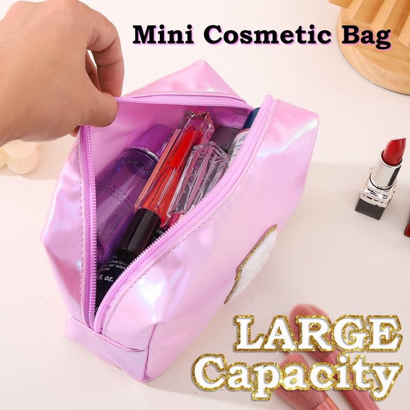 - 【 Unique Design 】This cosmetic bag with golden glittering chenille patch, fashionable and skin-friendly, comfortable to the touch. The cute letter pattern patch has a strong personalized style, which is sewn on this cosmetic bag, making the storage bag more eye-catching and adding a personalized atmosphere.