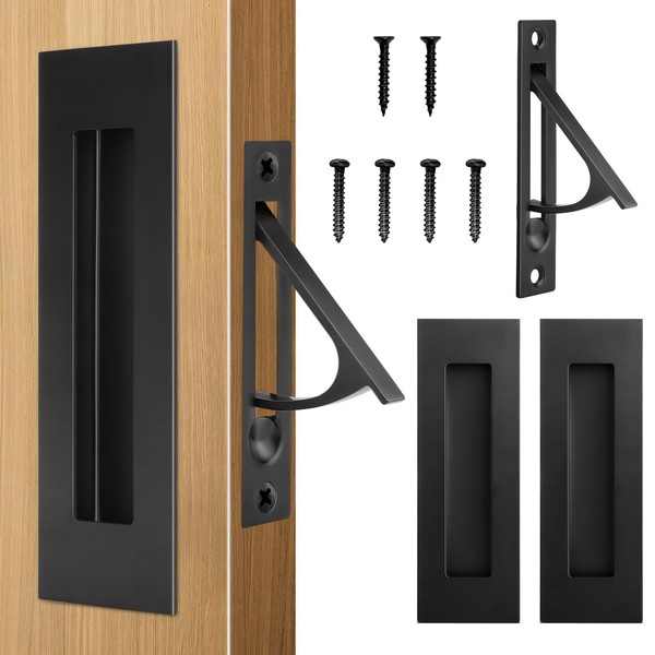 HBL' 2 Pack | Pocket Door Hardware Set – 4 Recessed Flush Finger Pulls & 2 Edge Pull, Made of 304 Stainless Steel, Template Included, Black.