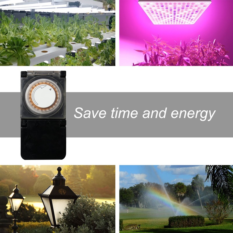 - 【Multi Purpose】: For indoor and outdoor use. This timer plug can be used for controlling hydroponics, sprinklers, heater, yard light, greenhouse growing lighting, ventilation/temperature control system, watering system etc.