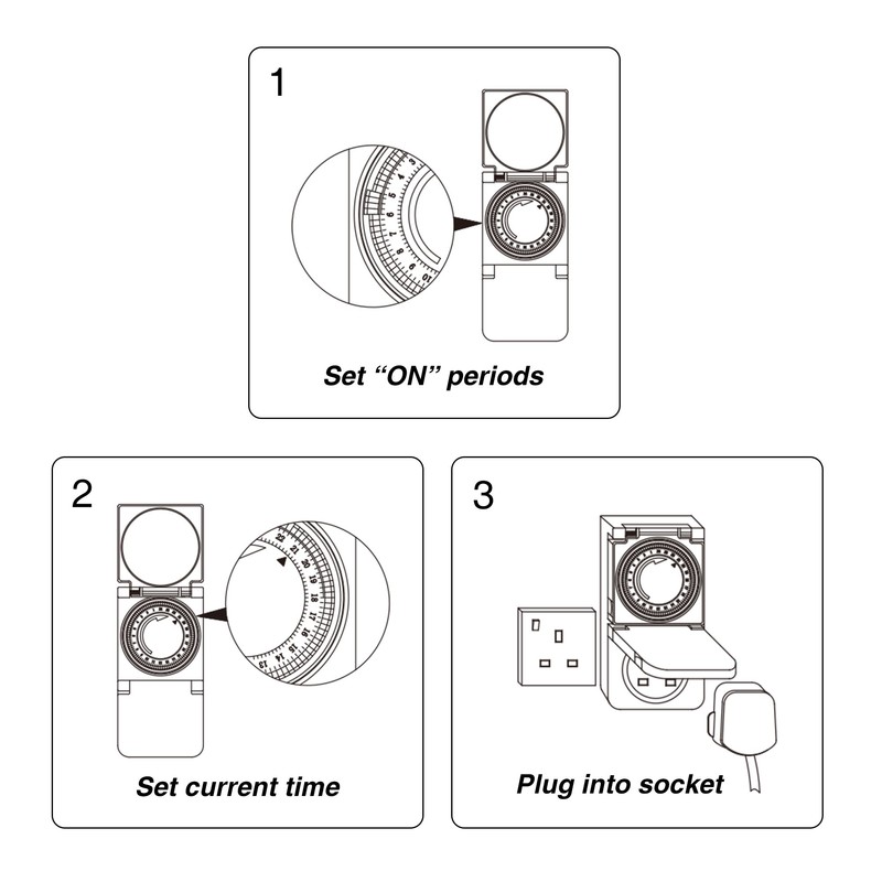 - 【Product Features】: With protective covers; With grounded pin, With children protector; Minimum setting time: 15 minutes, Maximum set time: 24 hours.