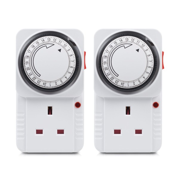 HBN 24 Hour Programmable Mechanical Timer Plug Switch, Energy Saving UK Plug-in Indoor Timer Socket for Lights, Lamp and Home Appliances (13A/3120W, 2 Pack)