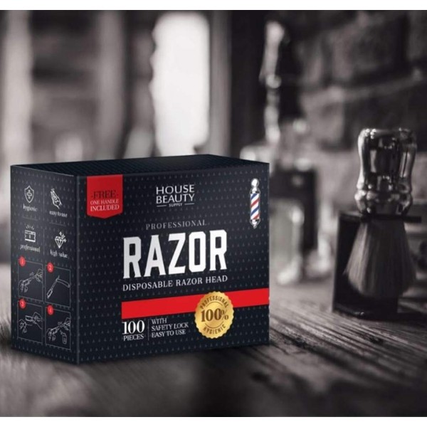 HBS Disposable Razor Heads, With Safety-Lock For Professional Barber Use 100 Count, Each Box Include 1 Multi-Use Straight Razor Handle.