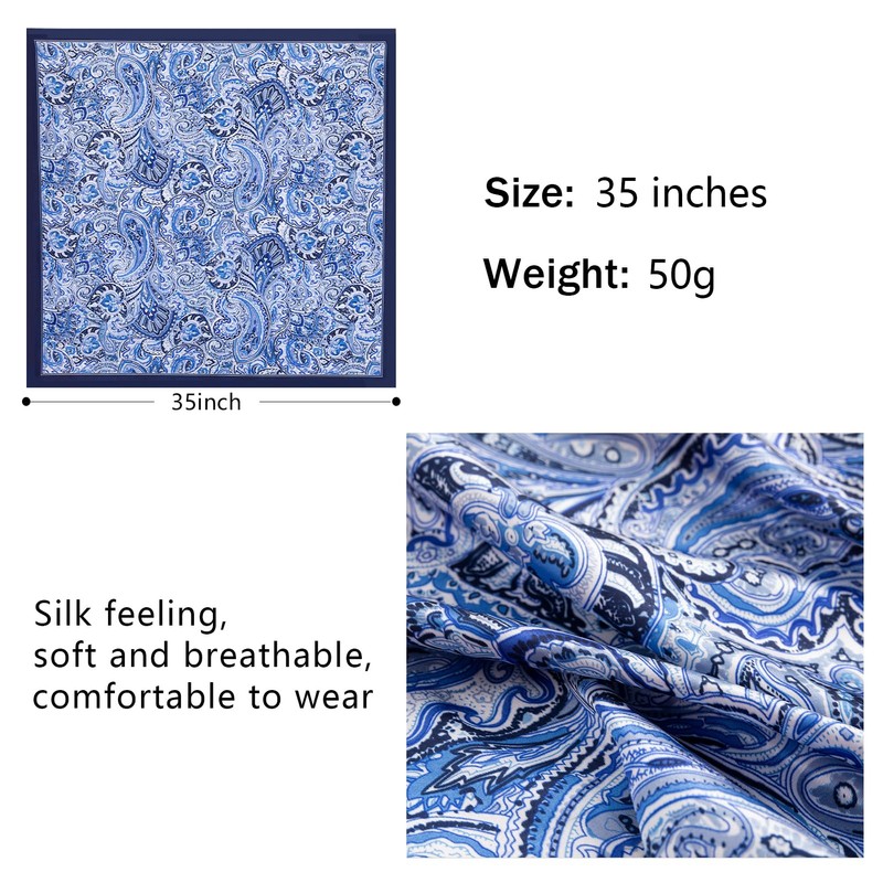 - Multiple Uses - The satin hair scarf can be used for a variety of purposes, including as a hair accessory, neck scarf, wrist band, waist band, can also shade the sun, prevent wind, dust, and even a beautiful accessory tied onto your handbag. And the size of the beach head scarf is 35 x 35 Inches is large enough to be used as a top.