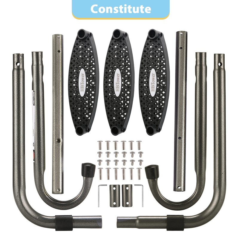 • STURDY & DURABLE: HBTowers step ladder is constructed with weather-resistant plastic and exquisite steel, it will not affect safety even if left outside for a long time. It has a Maximum Load-bearing CAPACITY of 220 LBS to ensure your safety. Climb the ladder safely, enter the trampoline, then have fun!