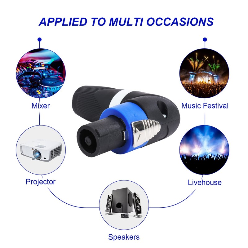 - 【 Amplifier to Speaker Connection 】 SpeakOn adapter is commonly used for high current demands of amplifier to loudspeaker to enhance the audio quality. It carries higher capacity of electrical current which is a better experience of audio hitting into the audience's ears.