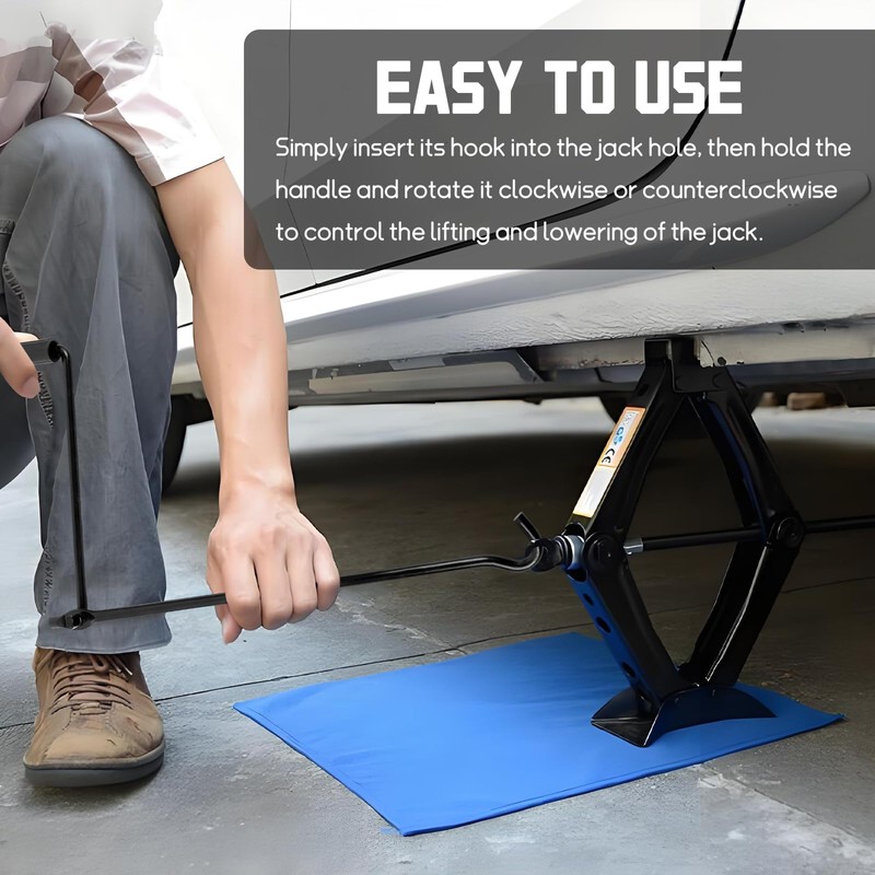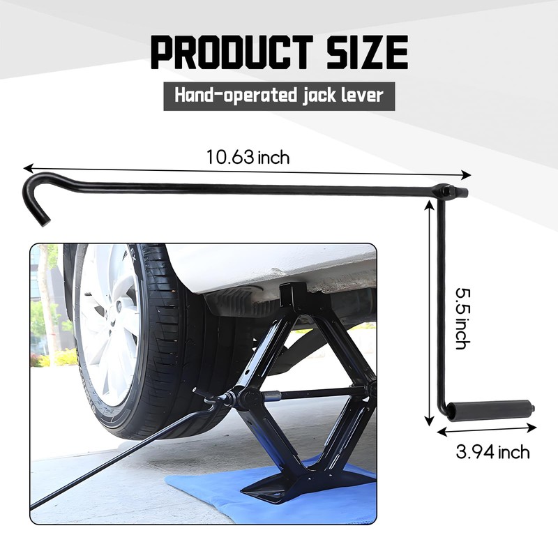 - 【Easy to Use】: Simply insert its hook into the jack hole, then hold the handle and rotate it clockwise or counterclockwise to control the lifting and lowering of the jack. No additional tools or complicated maneuvers are required, so even novices can get started quickly.