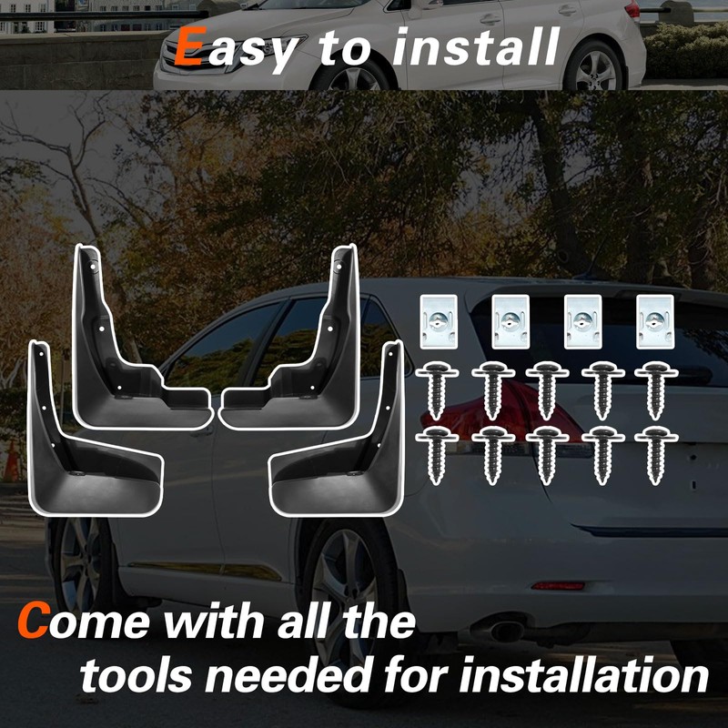 • Vehicle Fitment: The mud flap is compatible with toyota Venza 2013 2014 2015 2016 without the factory wheel lip moldings.