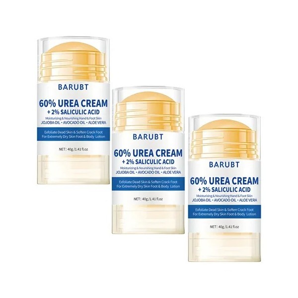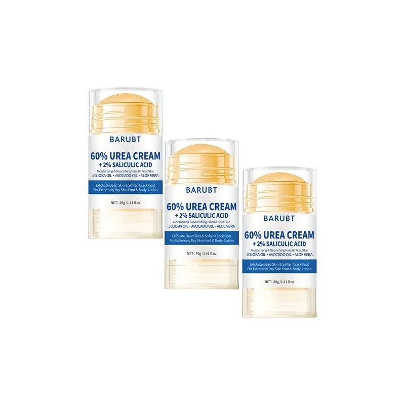 Esta crema para pies con urea es ideal para quienes sufren de callos persistentes y piel seca debido a estar de pie o caminar durante mucho tiempo. Esta crema para pies con urea ofrece un cuidado específico para restaurar la suavidad y el confort naturales de la piel. Beneficios de los ingredientes clave: 1. Urea al 60%: Conocida por sus altas propiedades hidratantes, la urea penetra profundamente en la piel para proporcionar una hidratación intensa.