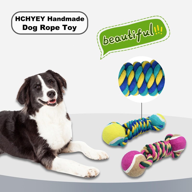 - ❤【Heavy Duty Dog Tug Rope with Tennis】Our HCHYEY dog tennis rope toy is the best combination of a heavy duty dog rope and two tennis balls, which makes it stronger and more durable for aggressive dog chewers. The bight patchwork colors of this dog ball toy can attract your lovely dogs’ attention and enjoy fun themselves.