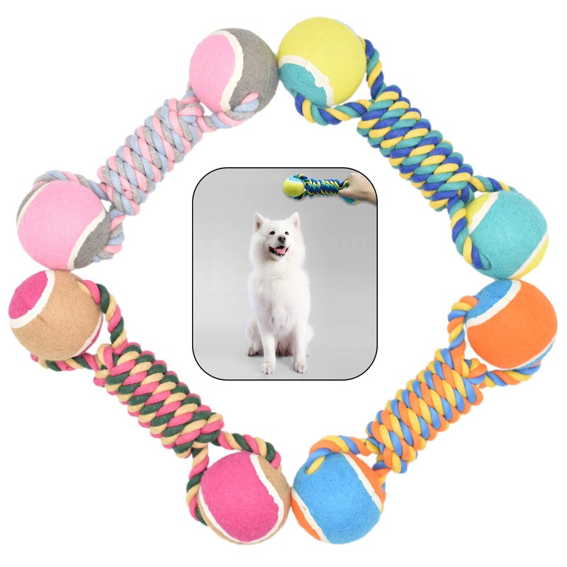 - ❤【Multiple Color-Combination Optional - Suit for All Breeds】There are 4 different color combinations of indestructible rope dog toy to choose. The dog toy with tennis is aimed to correct the aggressive chewers, suiting at home and outdoor for small medium and large dogs. Accompanying your dog and enjoying themselves in a tug of war game with no hesitate.