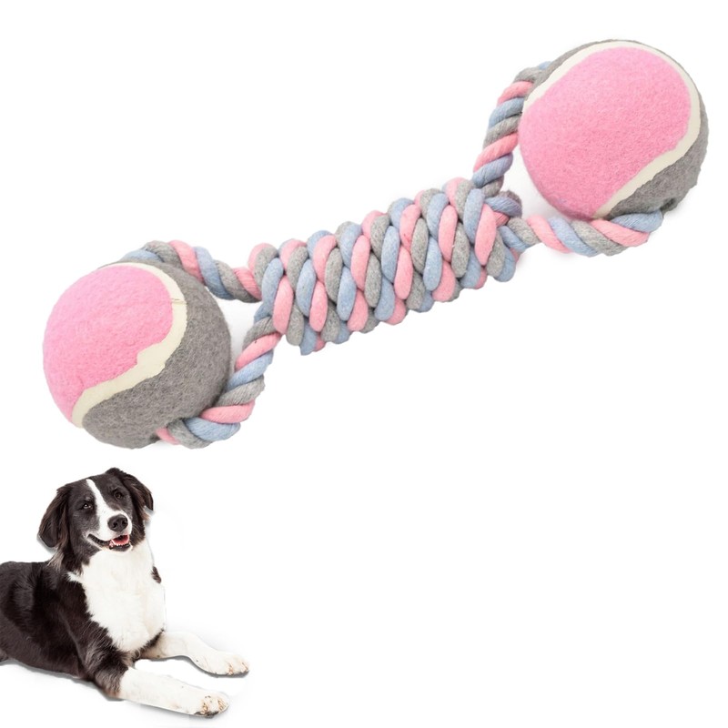 HCHYEY Dog Rope Toy, Dogs Toy with Tennis Balls for Aggressive Chewers - Interactive Pet Tug Rope Ball for Training & Promoting Relationship, Pets Chew Toy for Small, Medium, Large Dogs (Pink)