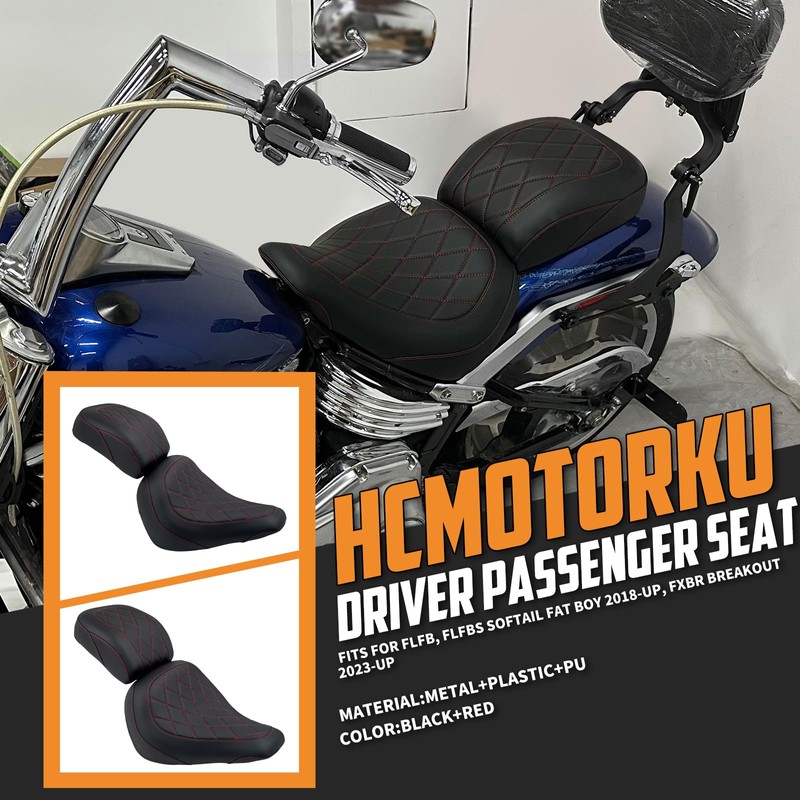 HCmotorku Motorcycles Front Driver Rider Seat Rear Passenger Pillion Seat Fit for Harley Softail Fat Boy FLFB Fatboy FLFBS 114 2018-Up Breakout FXBR FXBRS 2023-up (Red Stitching)